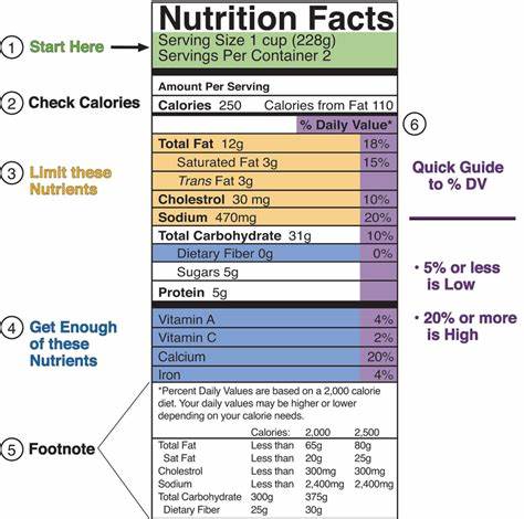 - %DV giúp bạn quyết định xem liệu thức ăn có giàu dinh dưỡng hay nghèo dinh dưỡng. Nếu %DV ít hơn 5% được gọi là thấp cho tất cả các chất dinh dưỡng, các chất bạn muốn kiểm soát như chất béo, béo bão hòa,, cholesterol, và natri), hay các chất bạn cần hấp thụ nhiều hơn như xơ, canxi. Trong ví dụ cho thấy trên 20% là cao cho tất cả các chất dinh dưỡng.