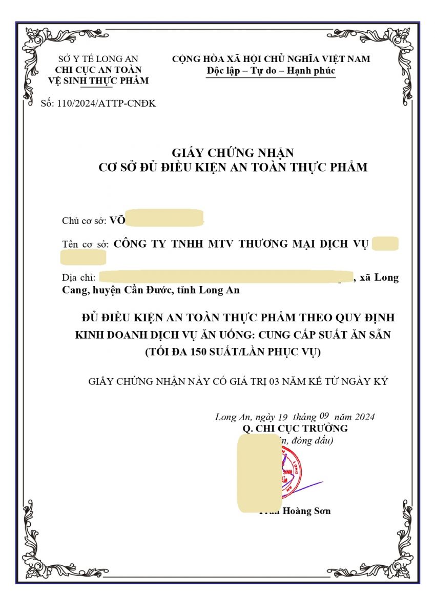 DỊCH VỤ TƯ VẤN XIN GIẤY PHÉP VỆ SINH AN TOÀN THỰC PHẨM TẠI LONG AN