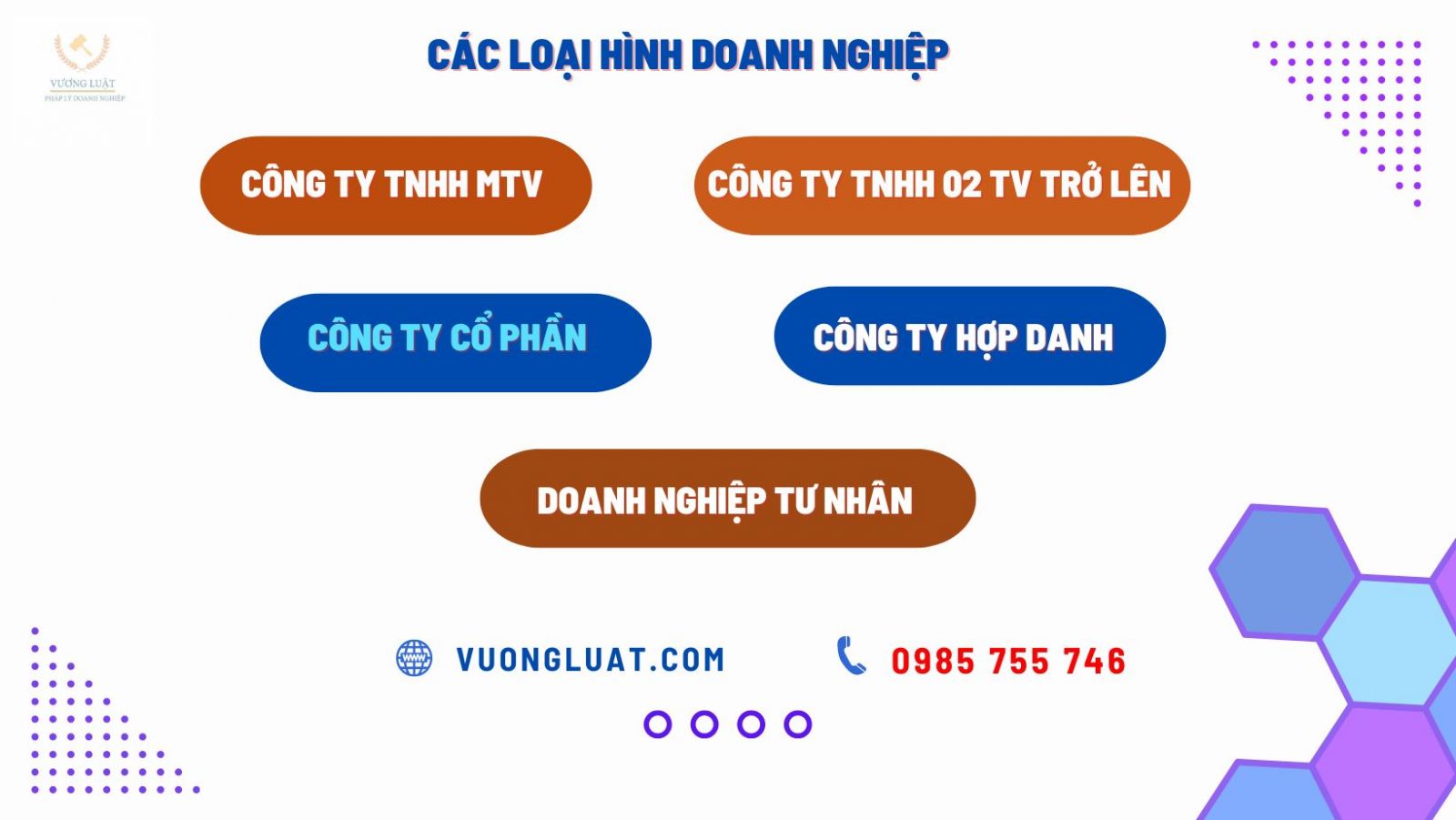 Tùy vào Nhu cầu của Khách hàng, Vương Luật sẽ tư vấn loại hình doanh nghiệp phù hợp, cũng như tư vấn về các đặc điểm, ưu điểm, nhược điểm của các loại hình doanh nghiệp.