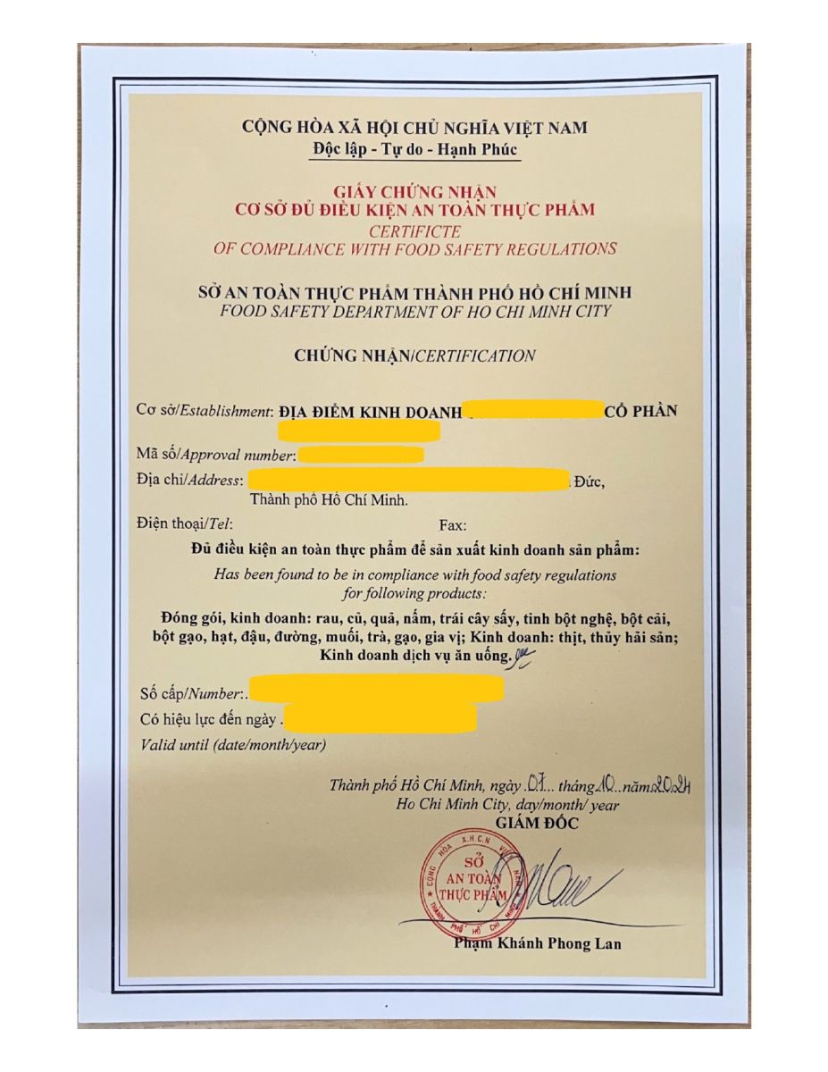 ***VỀ XÁC NHẬN TẬP HUẤN KIẾN THỨC AN TOÀN THỰC PHẨM: Do doanh nghiệp tự tổ chức thực hiện và Chủ cơ sở xác nhận và tự chịu trách nhiệm. Việc tổ chức thi và cấp giấy xác nhận kiến thức về ATTP đã chính thức được bãi bỏ.