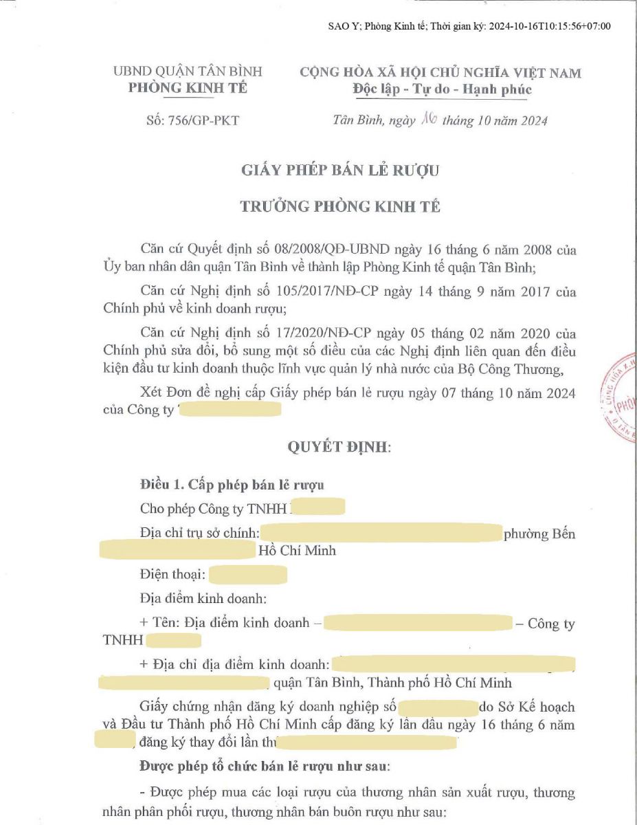 HƯỚNG DẪN ĐIỀU KIỆN VÀ THỦ TỤC XIN CẤP GIẤY PHÉP BÁN LẺ RƯỢU