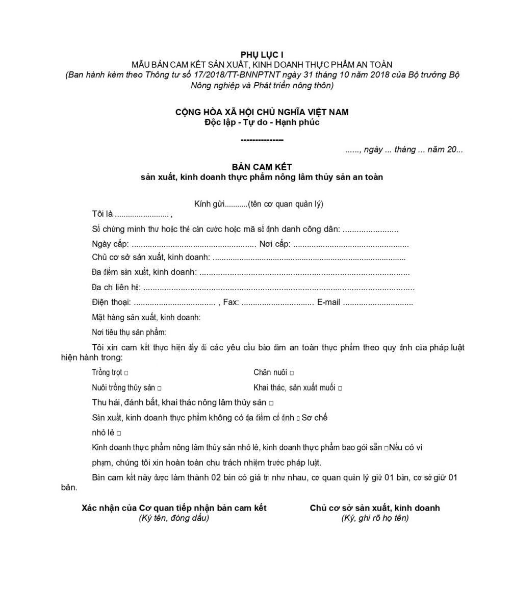TÌM HIỂU THÊM VỀ QUY TRÌNH THỦ TỤC THỰC HIỆN CAM KẾT AN TOÀN THỰC PHẨM TẠI ĐÂY.